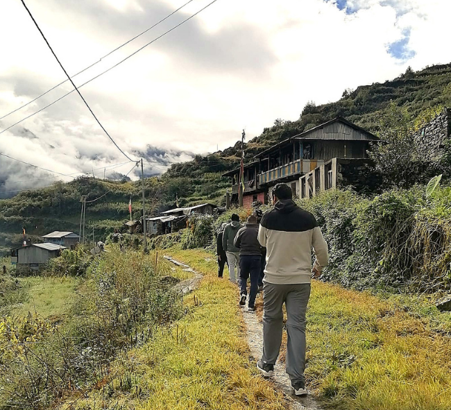 After two days of learning and sharing, it was time to return. We started our walk down through a forest and across landslide-prone slopes. When we reached the river, we saw that the only suspension bridge had been swept away by heavy rain. It was already getting dark. We were seven people, including two young girls, and some of us were already exhausted. With no lodges nearby, our only option was to climb back up the mountain- another two hours of steep stairs. We hiked for almost two hours and finally reached the same homestay we had stayed in before. Exhausted, hungry, but safe. The next morning, we started again, taking another route, walking for nearly four hours to find a bus back to Kathmandu.